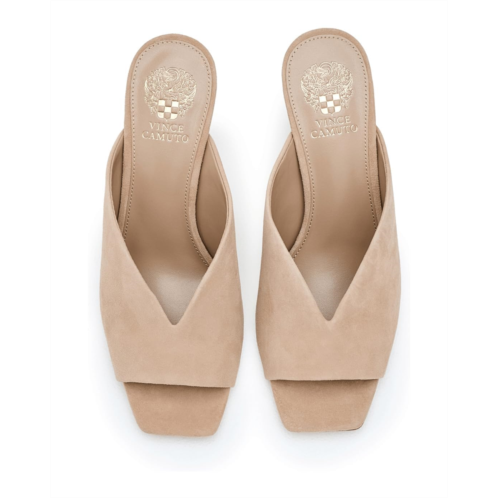 - The Vince Camuto Galeni Peep Toe High Heel Mule sandal stays right on trend with its dramatic sweetheart topline, sharp square toe, and flared heel. Easy to add with anything from trousers to denim maxi skirts, this pair always keeps you looking modern. Crafted from faux leather upper, polyester lining, and leather insole.