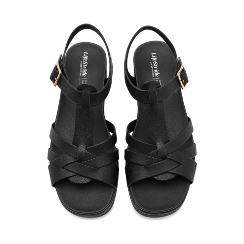 - All-day cushion, support, and flexibility with trusted Soft System comfort technology that makes these comfortable LifeStride Grandiose Strappy sandals perfect for everyday wear. Modern strappy wedge sandals in a choice of versatile colors to suit any casual occasion. Durable, textured faux leather upper and light thermoplastic rubber sole for reliable grip, making these open toe sandals a smart choice in fashionable footwear for women. Features an adjustable ankle strap with a metal buckle closure and added gore, making these women's wedge sandals easy to slip on and off. Platform wedge sandals with a slight heel and mini platform offer just the right height and stability without sacrificing comfort.