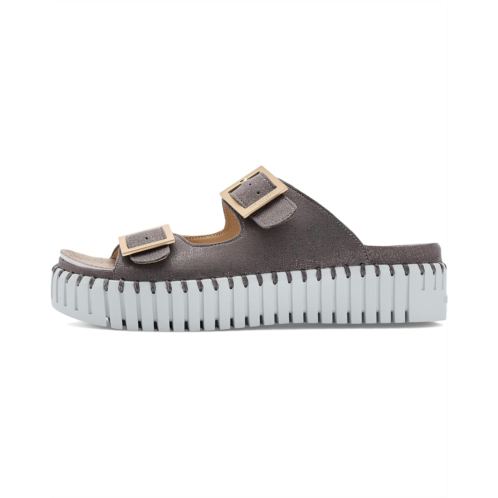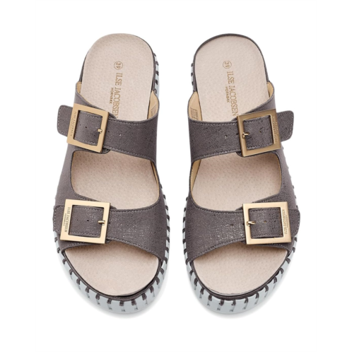 - With a design that breathes and flexes, the Ilse Jacobsen Tulip 1032 redefines the modern sandal for those who never stay in one place. Crafted with a lightweight Ethylene Vinyl Acetate upper made from recycled microfiber with a subtle glimmer finish, this slip-on style feels as good as it looks. Two sleek metal logo buckles offer easy adjustability, giving you a secure, customized fit every time. The faux leather insole is softly padded with built-in support, delivering all-day comfort without sacrificing style. Underfoot, the flexible Tulip outsole with a platform sole provides stability and cushioning, while the rubber lining and outsole ensure durability and grip. Thoughtfully stitched with matching recycled thread, this sandal blends sustainability with Scandinavian minimalism.