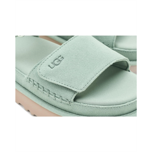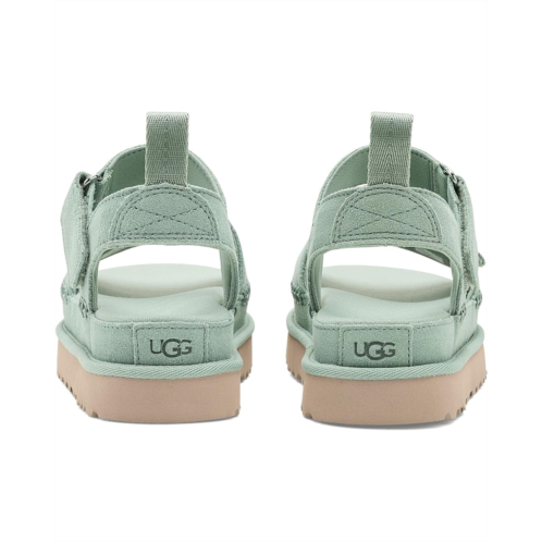- Step out the right way with the velvety suede UGG Goldenstar platform sandal. Adjustable straps give you fit preference while a plush foam footbed cushions your every step.