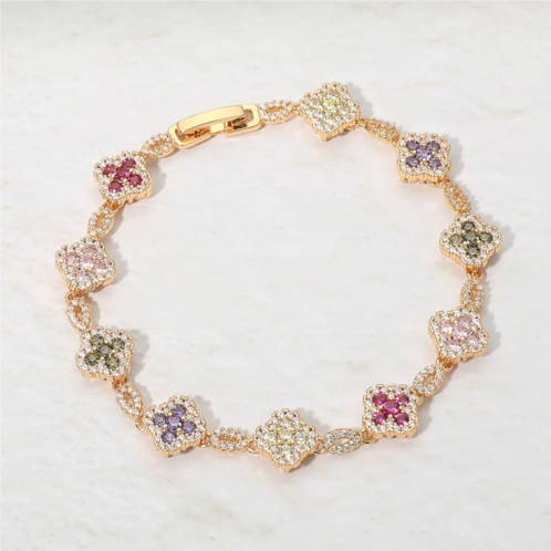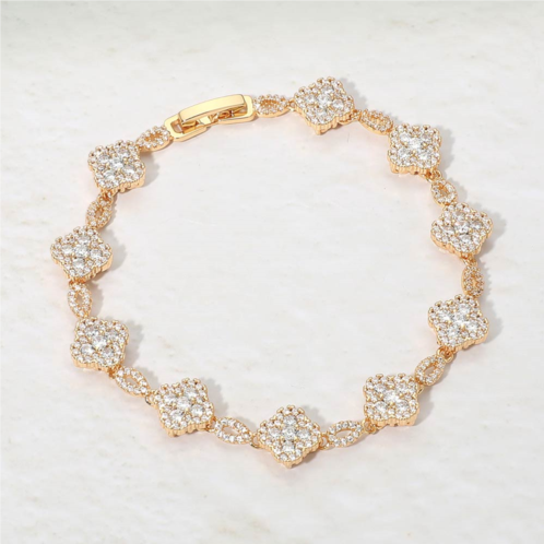 [US] FASHNZFAB 14k gold plated cz pave quatrefoil link bracelet