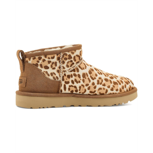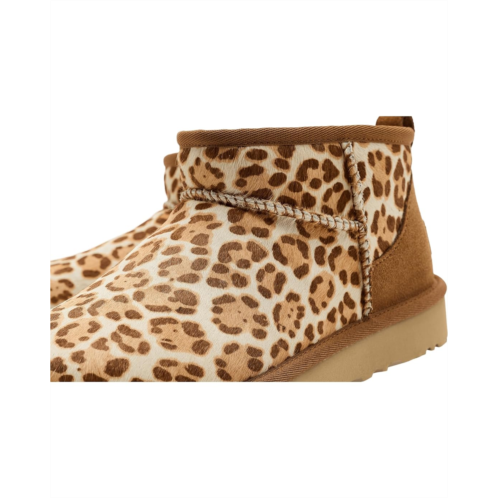 - From the wilderness to your wardrobe, the UGG Classic Ultra Mini Plains is a playful, patterned boot that's ready to make a style statement. The animal print cow-hair upper leans into the leopard moment, while the construction of our Classic Ultra Mini boot gives you The Feel of UGG that you can't live without. The low shaft makes for easy on-and-off, while our signature UGGplush lining and flexible, ultra-lightweight sugarcane ethylene vinyl acetate outsole provide cushy comfort for all-day wear. This product was made in a factory that supports women in our supply chain with the help of HERproject, a collaborative initiative that creates partnerships with brands like ours to empower and educate women in the workplace.