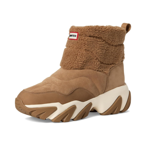 - The Hunter Debra boots combine trend-forward design with everyday functionality. These calf-high boots feature a cushioned footbed for all-day comfort, a sleek silhouette, and are 100% waterproof to keep your feet dry. Fleece insulated, they are made of a polyurethane insole and polyester lining. The nylon upper features a heel pull tab for easy wear.