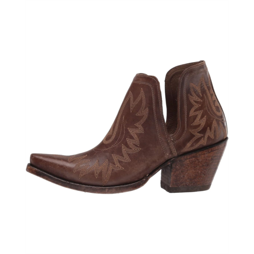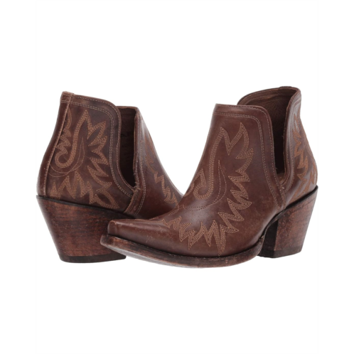- The Ariat Dixon ankle bootie blends a modern silhouette with classic Western accents, allowing it to complement skinny jeans and leggings.