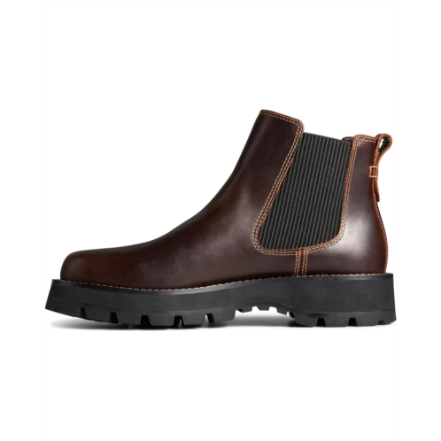 - Step into adventure with Sperry Mountain-Sider Chelsea - Embrace the elements with confidence in these stylish Chelsea boots. Featuring a waterproof full-grain leather upper from gold and silver-rated tanneries, they promise durability and eco-conscious quality. The waterproof seam-sealed construction and ribbed gore ensure dry comfort in any weather, while the slip-on design offers effortless wear. Enjoy all-day comfort with the PLUSHSTEP footbed and foam insole, supported by a rugged rubber outsole. The classic round toe and ankle-high silhouette make these boots a versatile addition to any wardrobe, perfect for both urban explorations and outdoor adventures.