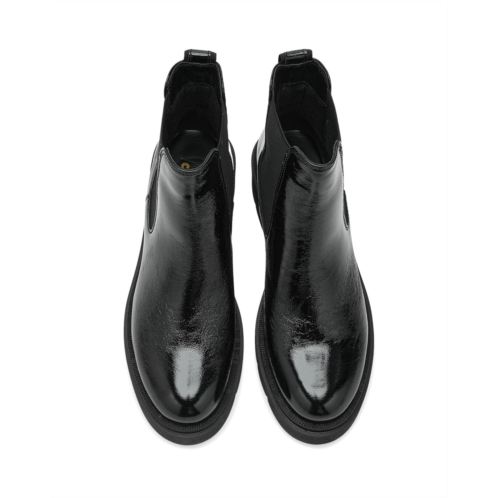 - The La Canadienne Waren ankle-high boot is a sleek, modern staple crafted from Italian crinkle patent leather with a distinctive shine. Featuring a decorative pull tab at the top line, a round toe, and a comfortable block heel, it blends timeless design with everyday wearability. Built with City Dry technology, the boot is fully waterproof while maintaining breathability thanks to its microfiber lining. A cushioned memory foam insole enhances comfort for all-day wear, making it ideal for both indoor and outdoor settings. Note: the City Dry guarantee excludes elastic panels, ensuring durability where it matters most.