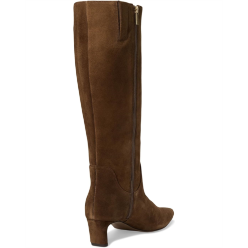 - This sleek, tall shaft Vince Camuto Avriah with snip toe is in contention for your new boot of the season. Boasting smooth leather upper, this knee-high boot has a sculpted heel with comfort padded sock, zippered side closure, and a rubber outsole. The shaft accompanies elastic gore for improved fit and comfort. Showcase these beauties with your fav dresses and skirts no matter the hemline.