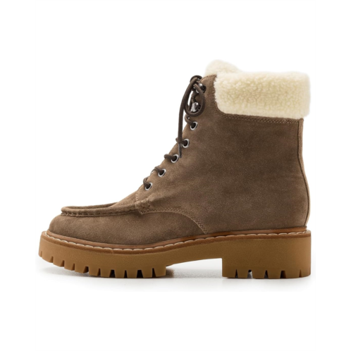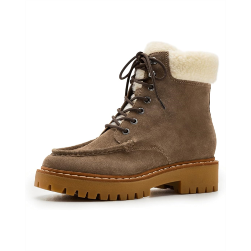 - Leather and faux fur upper.