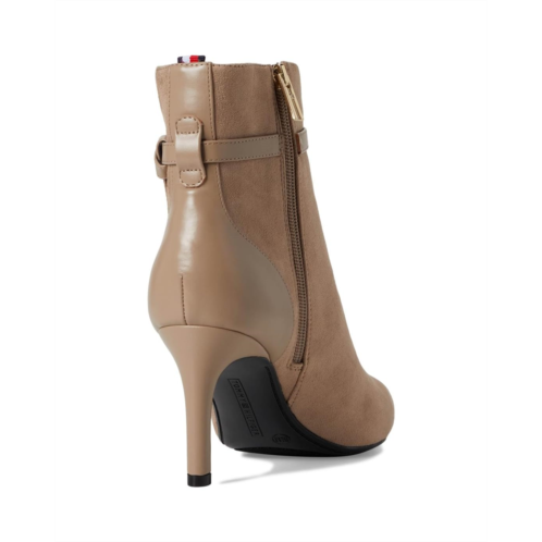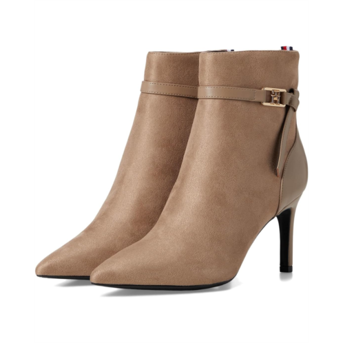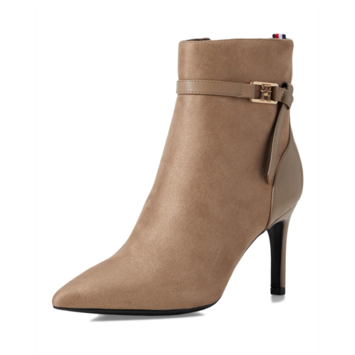- The Tommy Hilfiger TWJORINE2-DRE01 with a delicate ankle strap and signature logo hardware emboldens a sleek dress bootie balanced by a pointy toe and tapered heel. These stylish boots feature chic faux suede upper and smooth polyester lining for all-day comfort. With leather insole and trendy stiletto heels, you'll feel both stylish and supported from day to night. Est. 1985, Tommy Hilfiger is a leading lifestyle brand celebrating the essence of American style.