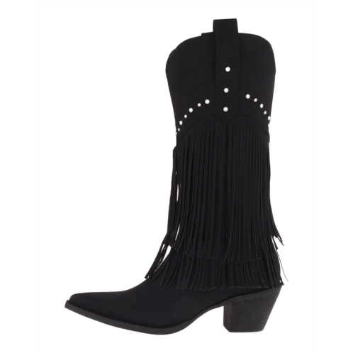 - Shaft features beautiful silver-tone studs, rhinestone accents, and long fringe detail.