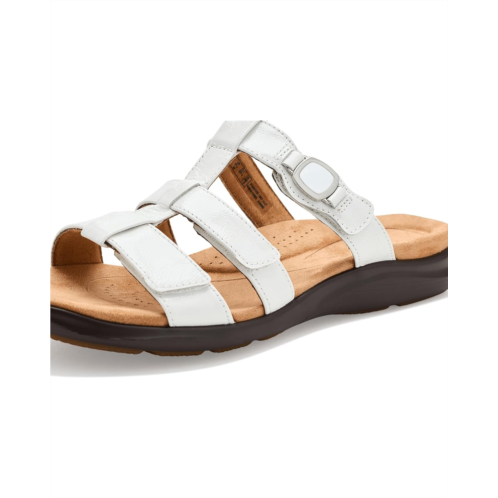 - Designed for everyday warm-weather wear, these Clarks Kitly Pearl sandals feature a premium leather upper and adjustable riptape straps that deliver a secure, customizable fit. A molded Contour Cushion footbed provides supportive comfort with every step, while a breathable textile sock and lining help keep feet fresh throughout the day. Move confidently in Clarks warm-weather sandal, Kitly Pearl!