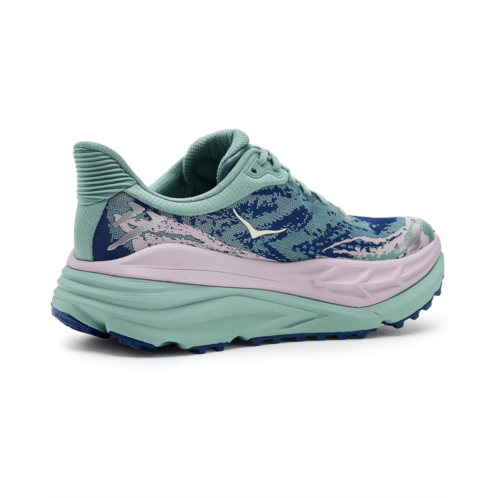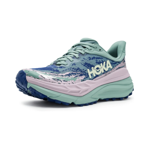 - Explore all the terrains with the utmost comfort of the Hoka Stinson 7 sneakers. The shoes feature an engineered jacquard mesh upper along with textile lining for breathable comfort and a removable EVA insole for superior cushioning. They are designed with H-frame technology to keep your feet stable on uneven terrains and have a durable toe cap for enhanced toe protection.