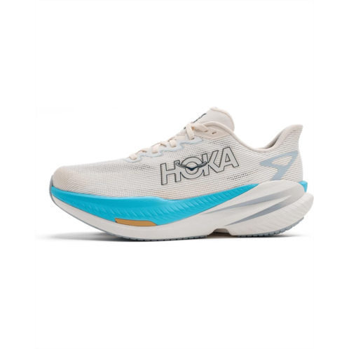 - Who doesn't want to go Mach speed? A propulsive speed training partner, the Hoka Mach X 3 shoes are the perfect addition to your running arsenal. Built for up-tempo training miles with an extra-resilient PEBA-topped midsole and snappy Pebax plate, they are refined with a collar and a breathable woven polyester upper to keep things light, cool, and fast for those next-level efforts. The Pebax plate and Speed-centric MetaRocker create a unique fulcrum effect that encourages a smoother transition from heel-strike through toe-off. Get ready for your outdoor rides or training sessions with these lace-up shoes.