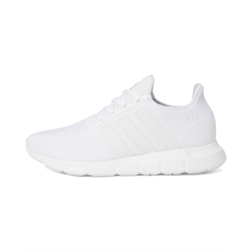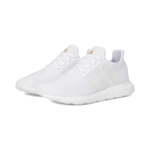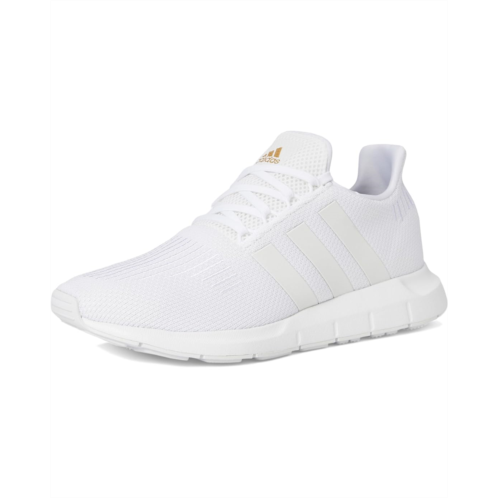 - Run the world in style wearing the adidas Running Swift Run. Crafted from textile, synthetic upper, textile lining, and insole, this pair of shoes features round toe, lace-up closure, classic three stripe detailing on the sides, and brand detailing on the tongue, and footbed.