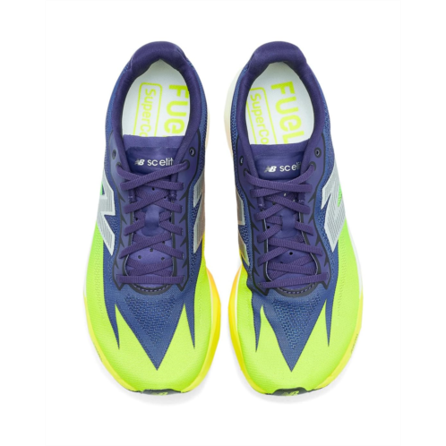 - The New Balance FuelCell SuperComp Elite v5 Sneaker is a race day shoe designed for the moments when seconds really do count. The propulsive feeling of the FuelCell midsole made with PEBA is combined with a thinner carbon fiber plate, offering superior energy return in a lightweight package and it delivers a propulsive feel to help drive you forward. The rocker profile allows for smooth, natural feeling transition from heel to toe, while the FantomFit mesh upper offers ultra-light bonded support. The low-top sneaker features a lace-up closure and signature New Balance logo detail at the side panel.