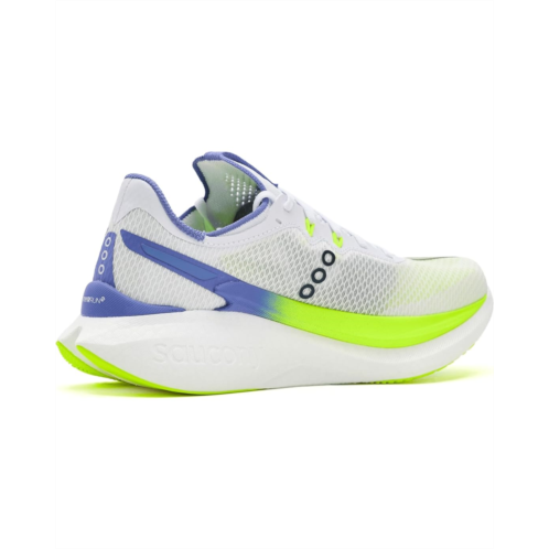 - The all new Saucony Endorphin Pro 5 is a premium, carbon-plated super foam race day shoe that helps you smash your personal best with ease. Featuring a PWRRUN PB base, Super Critical PWRRUN HG top layer, and a new aggressive Carbon fiber plate, it makes running faster, and more fun giving you the competitive edge. Crafted from leather upper, nylon lining, and ethylene vinyl acetate insole, this pair of shoes features round toe, lace-up closure, and brand detailing on the tongue, heel counter, and footbed.