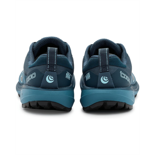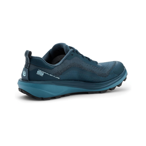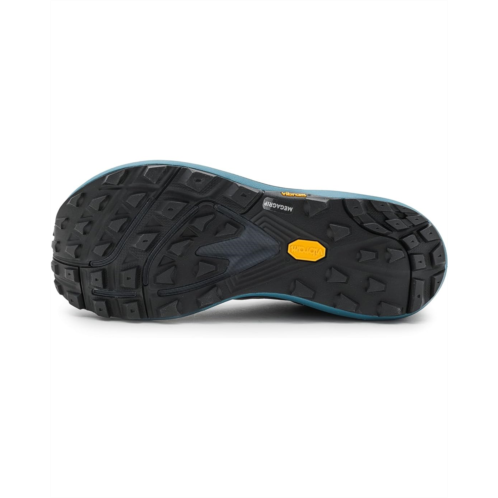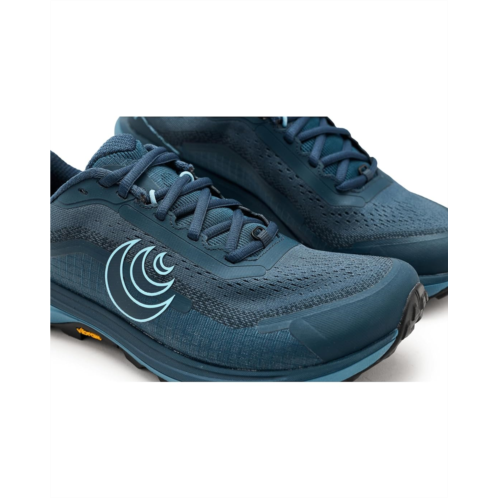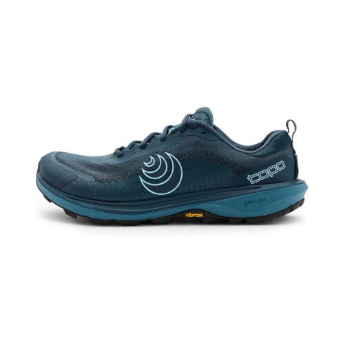 - The Topo Athletic Terraventure 5 is a trail partner built to turn rugged paths into confident, steady strides. Crafted with a tightly woven dual mesh polyester upper and lining, this trail shoe delivers a secure, breathable fit while adding durability in high-abrasion zones where you need it most. Underfoot, the specialty FKT Ethylene Vinyl Acetate insole offers a responsive step-in feel with excellent drainage, keeping you comfortable even in wet conditions. The platform balances moderate cushioning with a protective forefoot rock plate, giving you a smooth, stable, and shielded ride over rocks, roots, and rugged trails. A rugged rubber outsole powered by Vibram Megagrip provides exceptional traction and slip resistance, so you can move with confidence on both dry and wet surfaces. Finished with a secure lace-up closure and an integrated gaiter system with hook-and-loop attachment, the Terraventure 5 is built for fast, fearless, and focused trail runs.
