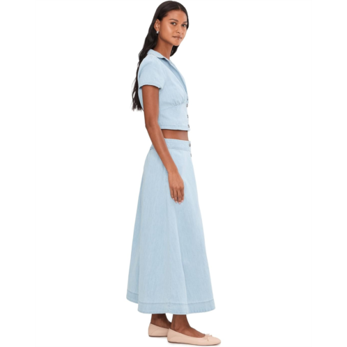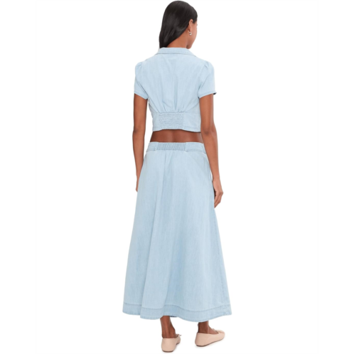 - Effortless styling is within reach with this charming midi skirt set featuring a fitted flattering bustier top and a matching A-line skirt in a coordinating airy fabrication for a graceful silhouette. This classy set features a smocked back top with V-neckline, sleeveless style, and button front closure. The bottom features easy pull-on design, elasticized waistband, button front closure, center slit detailing, and side hand pockets.