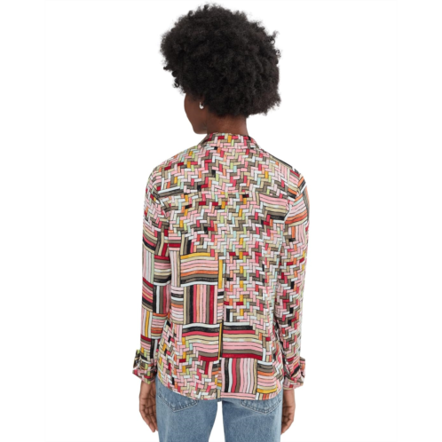 - Add an artistic flourish to your outfit choosing the NIC+ZOE Colorweave Shirt. Featuring a print inspired by modernist artwork, this shirt is just the right amount of whimsical. The thick, silky feel makes it perfect for dressing up or elevating an otherwise casual outfit. Designed with a timeless collared neckline, long sleeves, and a buttoned front closure, this shirt blends tailored structure with everyday ease. Mindfully made from eco-friendly fabric.