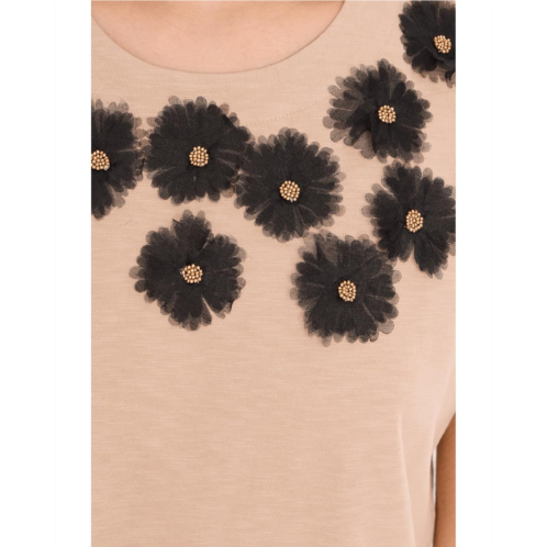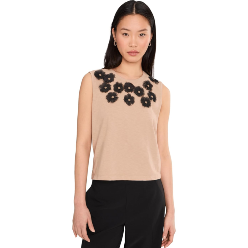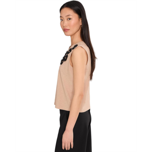 - Meet the NIC+ZOE Petite Organza Applique Tank, where simplicity meets refined elegance. Designed in a flattering regular fit, this sleeveless silhouette features a classic crew neck that frames the face beautifully while keeping the look clean and modern. Delicate beaded organza flowers around the neckline add a polished, artful touch, elevating this pull-on style from everyday essential to evening-ready statement. Crafted from a soft, comfortable fabrication, it delivers breathable ease without compromising sophistication. The effortless pull-on design makes styling simple, while the petite-friendly proportions ensure a tailored, just-right fit.