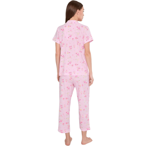 [US] POLO Ralph Lauren Womens Lauren Ralph Lauren Knit Short Sleeve Notch Collar Long Pants Pajama Set