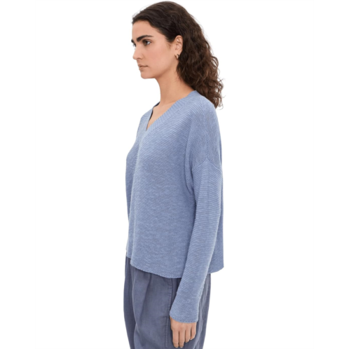 [US] Womens Eileen Fisher Organic Linen Cotton Slub V-Neck Sweater