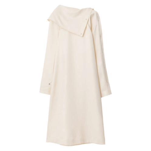 Burberry Ladies Dresses. Fashion category: Casual Dresses. SKU: 8083863. Color: Cream. Burberry Snap-Button Dress. Clean lines meet classic tailoring in this cream white silk-wool dress. Designed with a wide neckline, side press-stud fastening, and long sleeves, it falls to a straight, mid-length hem for a structured yet effortless silhouette. 76% Wool, 24% Mulberry Silk. Made in Italy.