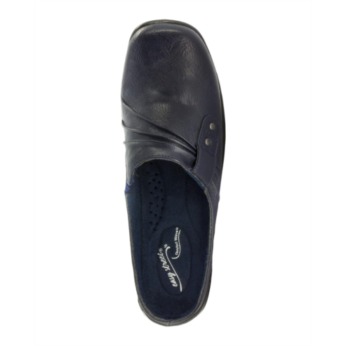 - Update your casual wardrobe wearing the Holly by Easy Street with its ruched detailing and decorative studs. Excellent traction, stretch for fit and comfort, and a well padded sock make this mule a fashionably comfortable style for everyday wear.