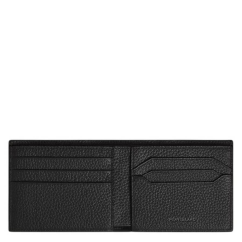 Montblanc Men's Wallets. SKU: 220198. . Color: Black. Size: 4.5 x 0.4 x 3.5 inches. Montblanc 6cc Grain Leather Wallet. This classic bifold wallet is crafted in black premium grain leather and thoughtfully designed for everyday use. It features six credit card slots, two compartments for banknotes, and two additional pockets for receipts. Lined with black fabric and finished with the iconic Montblanc emblem. Material: Leather. Made in Italy.