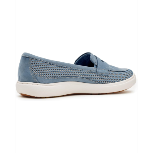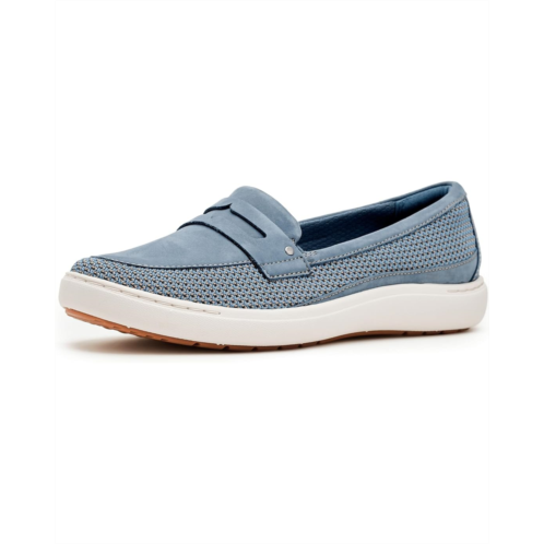 - Stay light on your feet in Clarks Nalle Glide, this season's sporty take on the trending loafer. Crafted with durable woven nubuck, this everyday silhouette combines casual aesthetics with iconic Clarks craftsmanship, keeping you feeling put together on off-duty days. Designed with a supportive Contour Cushion footbed and high-grip rubber sole, guaranteeing steady, supported steps on those busy days. This pair of shoes features round toe, slip-on style, textile sock and lining.