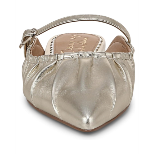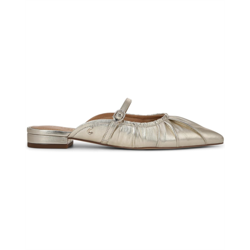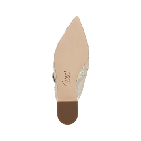 - Mark your dignified presence no matter where you go wearing the Circus by Sam Edelman Larissah! Featuring a timeless pointed toe updated with intricate ruching and slightly elevated by a supportive stacked heel, these backless shoes offer you a flattering look from day to night. With the adjustable buckle closure on the instep strap, the shoes deliver a secure fit.