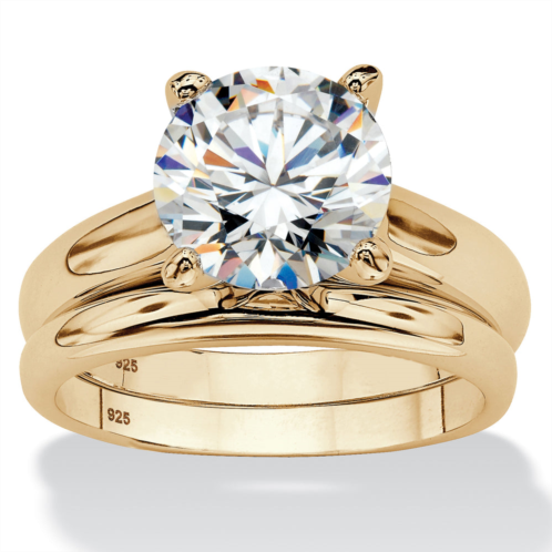 [US] Palm Beach Jewelry 3 cttw round cubic zirconia 14k gold-plated silver solitaire wedding ring set