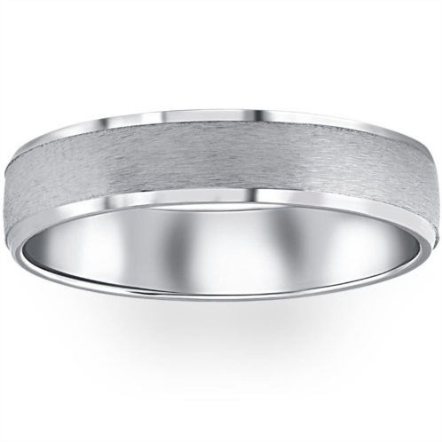 This mens ring measures 5mm wide and features a brushed center and bright polished edge. The band is made of solid white gold, the polished edge is beveled giving this classic ring a traditional sleek look. Its the perfect width and style to enjoy your mens wedding band every day.
