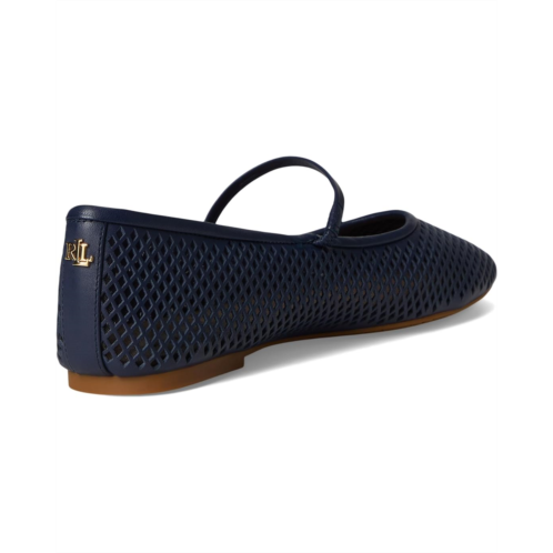 - Breathe new life into your stride, LAUREN Ralph Lauren Jayna Perforated Leather Mary Jane Flats. Crafted from supple perforated nappa leather, this beloved ballet flat is reimagined in a refined Mary Jane silhouette that adds textural depth and timeless appeal. The all-leather upper, lining, and insole deliver a soft, glove-like feel, ensuring lasting comfort from morning meetings to evening strolls. Designed with a convenient pull-on style, Jayna slips on seamlessly for polished ease without sacrificing sophistication. A flexible rubber outsole provides reliable traction and everyday durability, making it as practical as it is stylish. Finished with Lauren Ralph Lauren's signature logo at the back, this flat offers a subtle touch of heritage luxury.