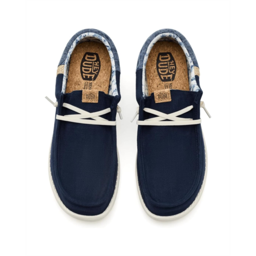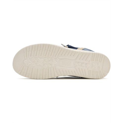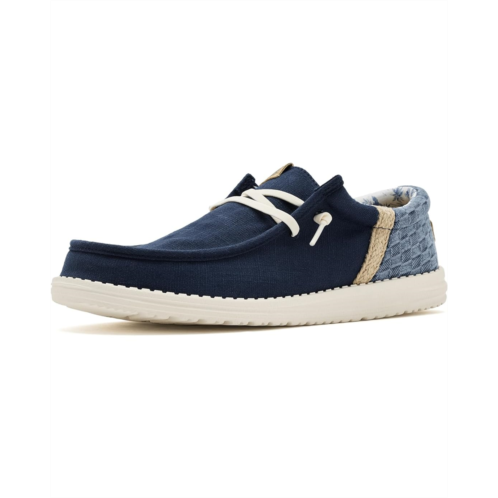 - The Hey Dude Wally Funk Summer Stitch sneaker is crafted from cotton upper, making it lightweight and breathable for everyday wear. Designed with easy-on elastic laces, a removable ethylene vinyl acetate insole, it delivers effortless comfort and convenience. The rounded toe and Flex & Fold construction support healthy feet by encouraging natural movement and complete freedom, making this sneaker the perfect go-to for roaming in style and comfort.