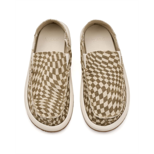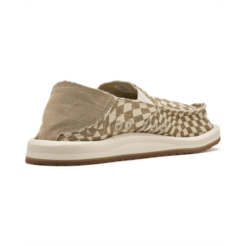 - The Sanuk Donny Novelty shoes are casual, boat shoes designed with a seasonal rubber upper with traditional raised toe seam, frayed edges, and hidden elastic gore to enhance fit. These low-top shoes are made of a cotton lining and a polyurethane insole. Their contoured, high-rebound Soft Top footbed for barefoot-friendly wear. These slip-on shoes feature a Happy U tread sponge rubber outsole made with 53% recycled material.
