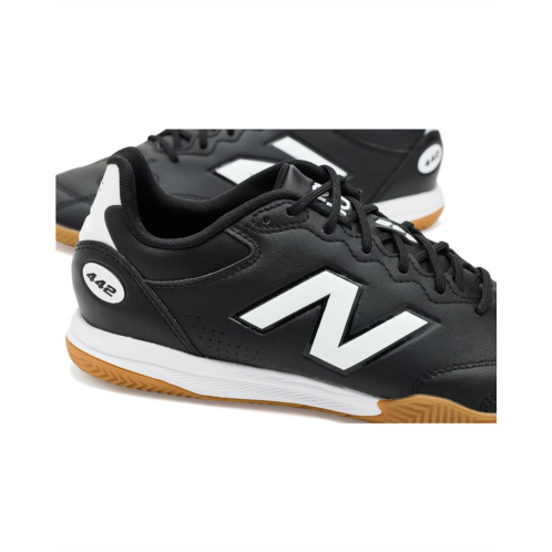 - Sporty aesthetics meet ultimate comfort in the New Balance 442 Team In V3 Soccer Cleats. The low-top shoes are crafted with a leather upper with signature New Balance logo detail at the side panel, textile lining, and a textile insole. The lace-up closure ensures a secure fit on the go.