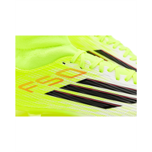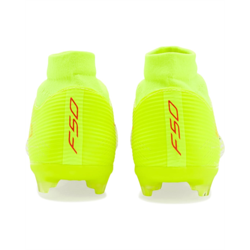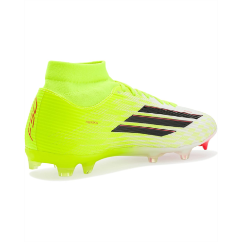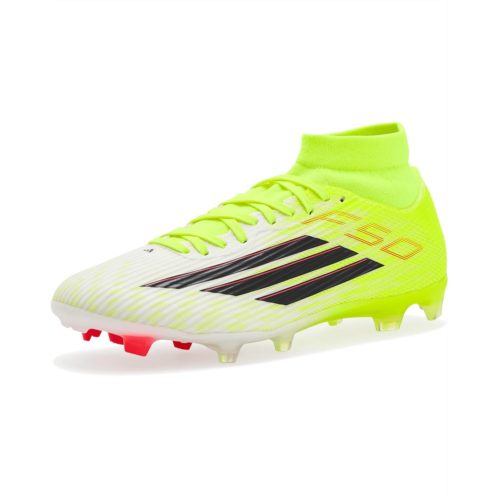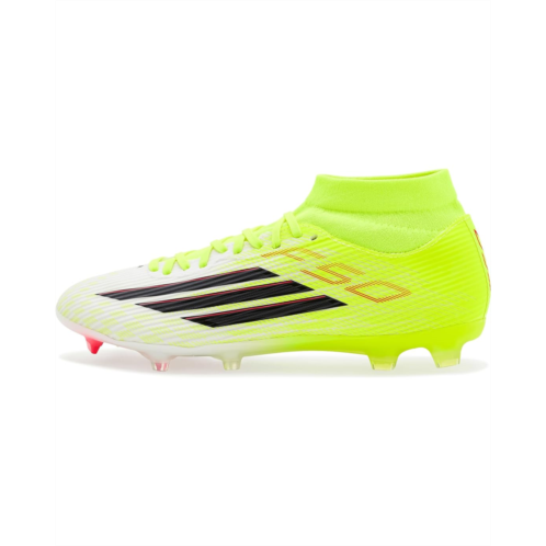 - Unleash next-level speed wearing the adidas Unisex F50 League Mid FG/MG Soccer Cleats, designed for players who live for explosive moves and decisive moments. Crafted with a durable rubber upper, these cleats deliver lightweight control and a responsive feel that keeps you locked into every touch. The rubber insole adds underfoot comfort, cushioning quick sprints and sharp cuts from kickoff to the final whistle. A synthetic rubber lining enhances durability while creating a snug, supportive fit, and the pull-on construction makes gearing up fast and effortless. Finished with a secure lace-up closure, these cleats offer adjustable lockdown so you stay stable during high-intensity play. The synthetic rubber outsole is engineered for firm ground and multi-ground surfaces, providing reliable traction and smooth transitions across pitches.