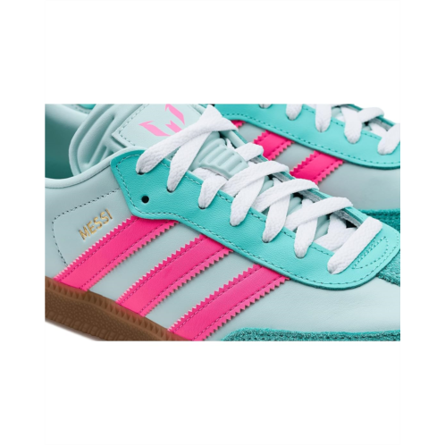 - When the biggest games are on the line, you can count on Lionel Messi to deliver. Represent the Argentine's on-pitch passion from beyond the touchline in these comfortable adidas Samba Messi Soccer Cleats. The low-top style features a leather upper, natural rubber lining, and a rubber insole, combining classic Samba styling with performance-driven comfort and durability.