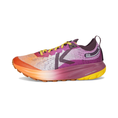 - Take every step with style and confidence wearing the KEEN Seek Trail Running Shoes. Ultra abrasion-resistant performance textile uppers provide not only long-lasting durability but also the breathability needed for a warmer weather trail run. The breathable lining adds to comfort while running. Original Fit has generous space across the forefoot for toes to splay. Lace garage stretch pocket keeps laces securely tucked in. Padded tongue and collar allow for enhanced comfort, while the tie lace system ensures a secure fit. QuantumFoamX high-energy cushioning is added for more fluid runs with longer-lasting comfort. High-abrasion formulation of KEEN.ALL-TERRAIN rubber outsole offers incredible durability and longer-lasting traction and the 4mm multi-directional lugs offer traction. Its gaiter ready with a reinforced cutout in the upper and hook-and-loop attachment in the heel. The natural, pesticide-free odor control keeps feet fresh. Plus, the ankle pull tab allows donning & doffing.