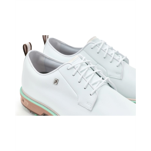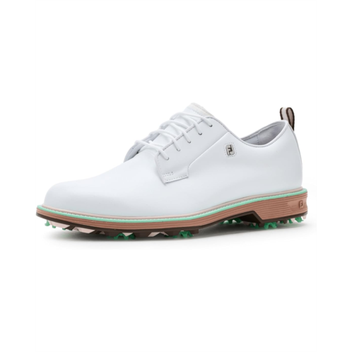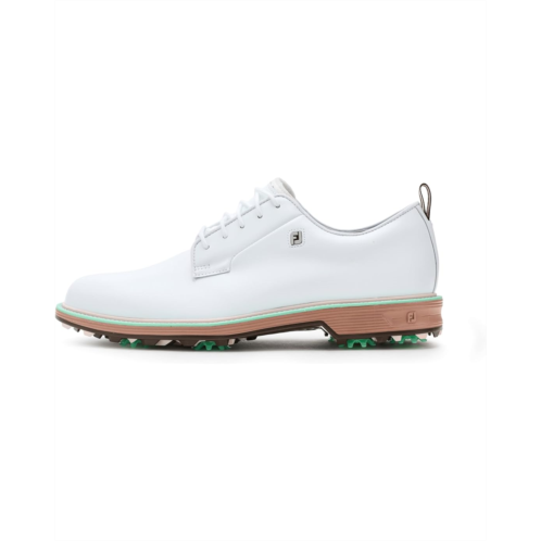 - The FootJoy Premiere Series, Field blends heritage-inspired design with modern innovation, making it the ultimate choice for golfers who demand both sophistication and function. Crafted from hand-selected, premium full-grain leather, this classic shoe offers a polished look while delivering long-lasting durability. Inside, soft leather linings and enhanced collar padding provide unmatched comfort, while the OrthoLite EcoPlush FitBed ensures all-day support with every stride. The supportive EVA midsole cushions each step, and the advanced VersaTrax+ outsole with renewable Pulsar LP cleats delivers tour-level traction on any surface. Designed with Blucher construction, it gives a generous fit across the top of the foot, accommodating players who value comfort as much as performance.