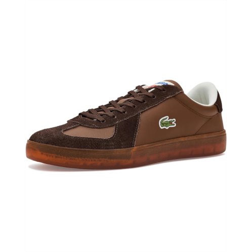 - The Lacoste Baseshot Pro Leather Sneakers bring heritage tennis style into a modern silhouette. Crafted with a leather and suede upper, they feature a textile lining and a retro Lacoste tricolor tag on the tongue that nods to the brand's tennis legacy. A debossed Lacoste logo on the heel adds subtle branding, while the semi-translucent gum outsole delivers traction with a contemporary edge.