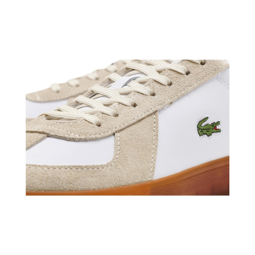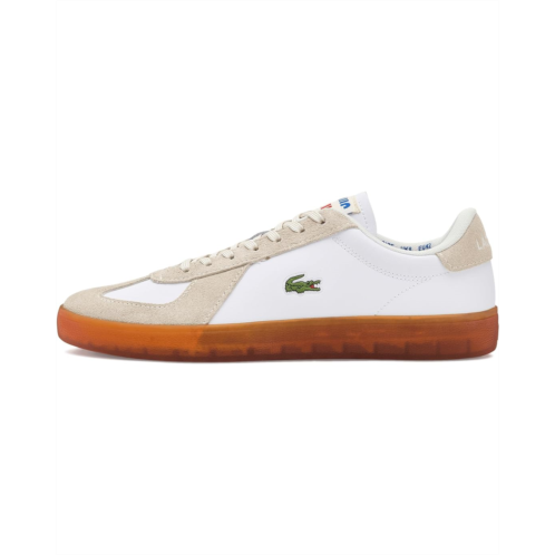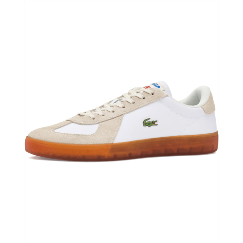 - The Lacoste Baseshot Pro Leather Sneakers bring heritage tennis style into a modern silhouette. Crafted with a leather and suede upper, they feature a textile lining and a retro Lacoste tricolor tag on the tongue that nods to the brand's tennis legacy. A debossed Lacoste logo on the heel adds subtle branding, while the semi-translucent gum outsole delivers traction with a contemporary edge.