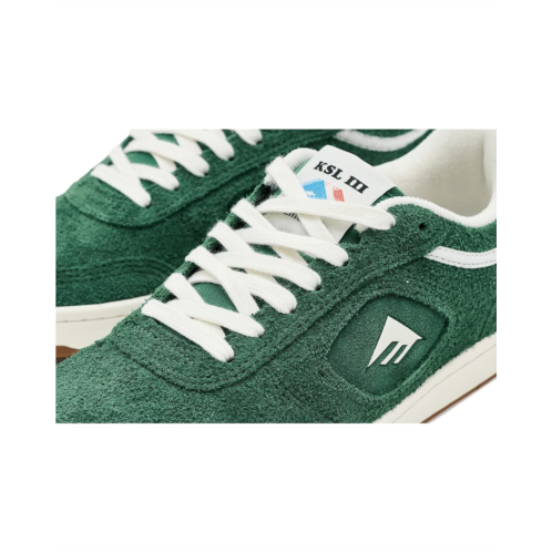 - The Emerica Ksl Iii is a retro court-inspired skate shoe designed in collaboration with Kevin 'Spanky' Long, blending creativity, durability, and skate-ready tech. Engineered for impact protection and board control, it features a double-stitched toe cap and blind seam ollie area to withstand repeated wear, while the drop-in EVA foam insole and internal Empact foam heel pod cushion landings with precision. The 400NBS rubber outsole with herringbone tread delivers reliable grip and long-lasting traction, and the cotton lining adds breathable comfort.
