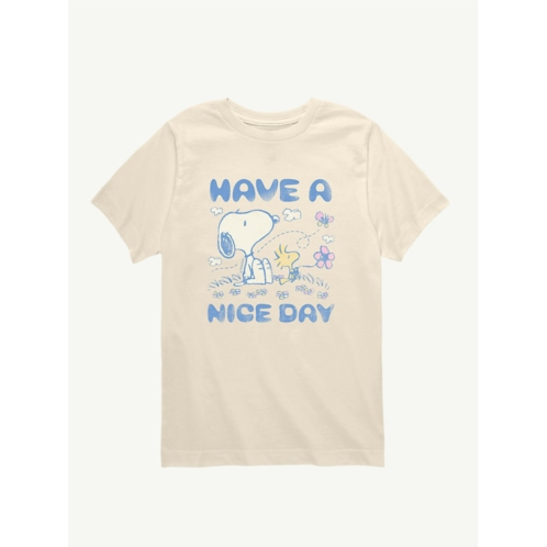 - Welcome sunny days in this Toddler Peanuts Snoopy and Woodstock Have a Nice Day Short Sleeve Graphic T-Shirt. Featuring a bright, spring-inspired design, ita€s perfect for everyday play.