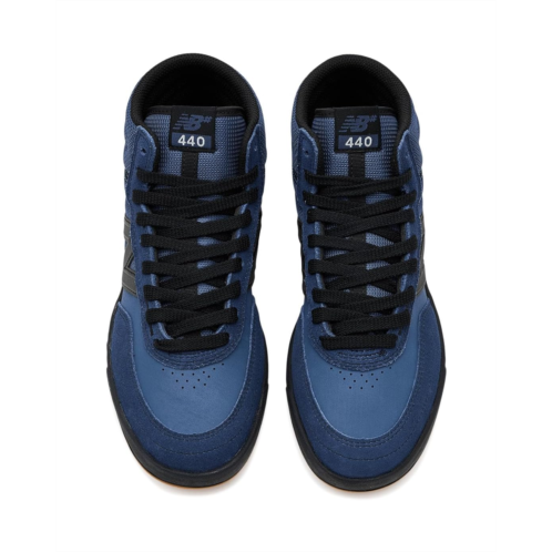 - Introducing the New Balance Numeric 440 v2 High Sneaker, an update to the team favorite high-top skate shoe. We've updated the foam in the heel to Abzorb and coupled that with an Ortholite insole insert to increase comfort and help minimize impact. Lowering the height of the collar increases mobility, while the tack stitching on the eyestay and increased height of the toe cap increase durability. The round-toe sneakers are crafted with a suede upper, polyester lining, and mesh for breathability & comfort. It also features double-layered suede toe for durability, reflective performations on the heel, and New Balance signature logo detail at the side panels for an authentic touch.