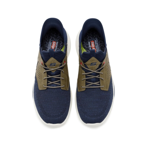- Introducing the SKECHERS Slade - Caster shoes with an exclusive Heel Pillow that holds your foot securely in place. Their Relaxed Fit offers a roomy comfort fit at toe and forefoot, while the Skechers Goga Mat Arch supportive cushioning takes your comfort to the next level. These low-top shoes are made of a nylon upper, ethylene vinyl acetate insole, and polyvinyl chloride lining.