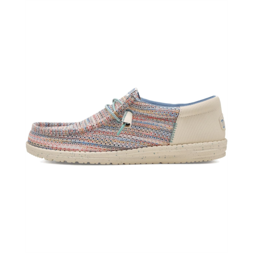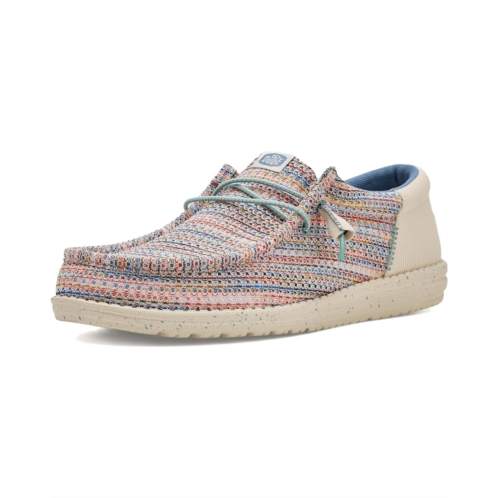 - Easy, breezy, textile makes this Hey Dude Wally Funk Multi Mesh slip-on sneaker ready to roam. Easy-on elasticized laces, ethylene vinyl acetate outsole, and removable insole provide go-to comfort. Flex & Fold technology supports healthy feet with its unique shape, giving complete freedom of movement.