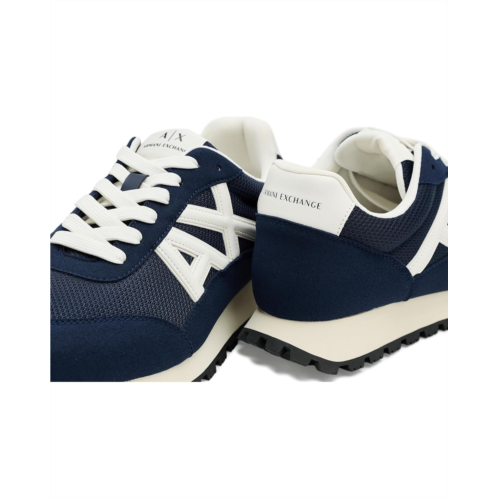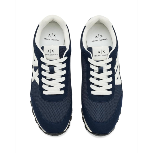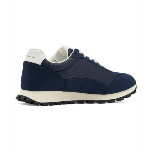 - Step into elevated everyday style with the Armani Exchange Drop Sneaker Designed with a sleek combination of soft microsuede and breathable mesh, this low-profile sneaker delivers both comfort and contemporary appeal. The lightweight construction and cushioned sole provide all-day support, while subtle Armani Exchange branding adds a refined finish. Perfect for casual wear, these sneakers pair effortlessly with denim, joggers, or relaxed tailoring.
