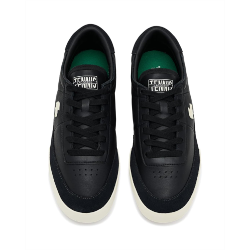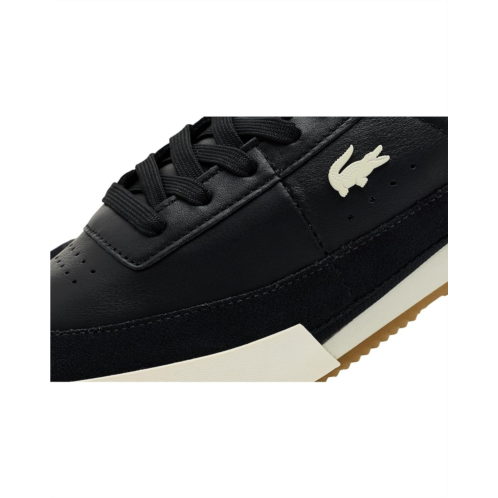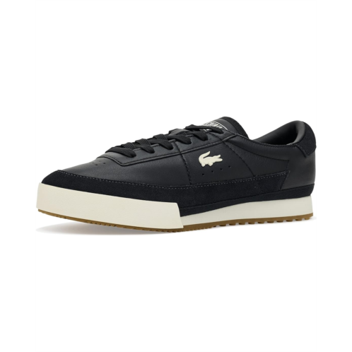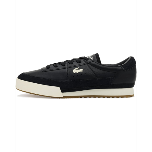 - The Lacoste Aura Leather Sneakers has a streamlined silhouette and subtle detailing to create a timeless sneaker that pairs effortlessly with any look. Crafted from leather, and suede upper, polyurethane and recycled polyester lining, and polyester insole, this pair of shoes features round toe, lace-up closure, perforations on the vamp and quarter, and metal crocodile branding on the quarter.